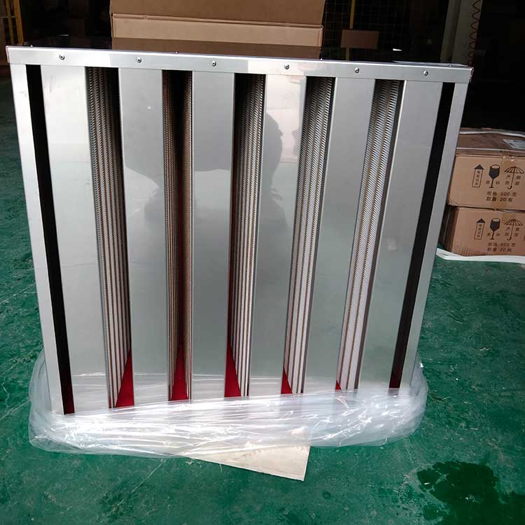 有隔板高效過濾器是用超細纖維作濾料、優(yōu)質(zhì)牛皮紙熱滾壓成形或采用膠版紙、鋁鉑作分隔板,與木框或鋁合金框膠和而成,具有過濾效率高,阻力低,風量大的優(yōu)點。有隔板高效過濾器多采用雙面上膠的銅版紙作分隔板,目的是為了防止分隔板受冷熱干濕的影響發(fā)生收縮,從而散發(fā)顆粒。適合于低級別的非單向流項目與各種凈化設(shè)備和潔凈廠房。有隔板過濾器中,鋁隔板過濾器主要用于高溫或高濕環(huán)境,紙隔板過濾器用在普通潔凈環(huán)境。有隔板風量相對較大,可以用作耐高溫過濾。