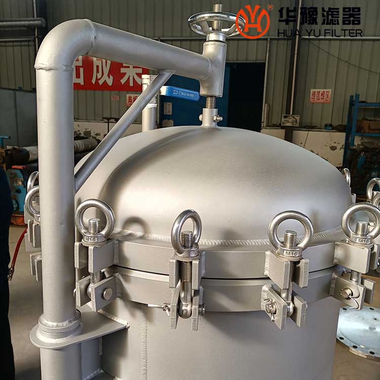 5)擰開上蓋吊帽,提起上蓋,多袋濾機需轉(zhuǎn)過一定角度。